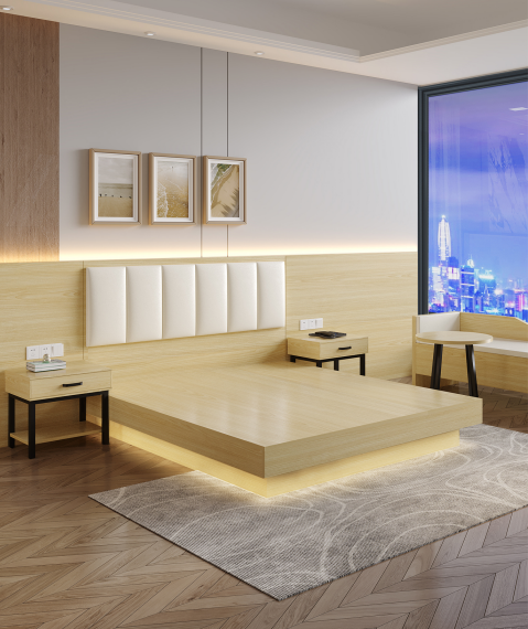 ชุดเฟอร์นิเจอร์ห้องนอนโรงแรมทำจากไม้สำหรับห้องพักในโรงแรมดีไซน์ทันสมัยออกแบบได้ตามต้องการ