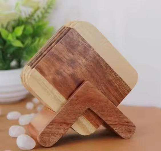 ที่รองแก้วไม้ออกแบบสไตล์นอร์ดิกพร้อมที่วางไม้กันลื่นที่รองถ้วยทำจากไม้