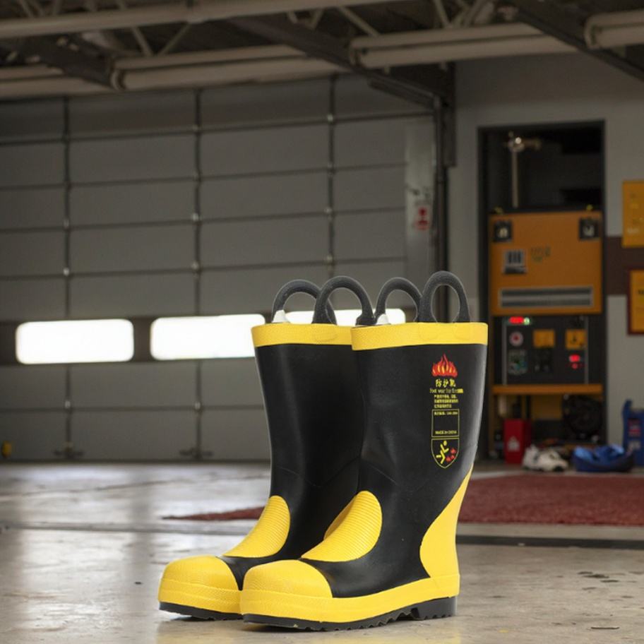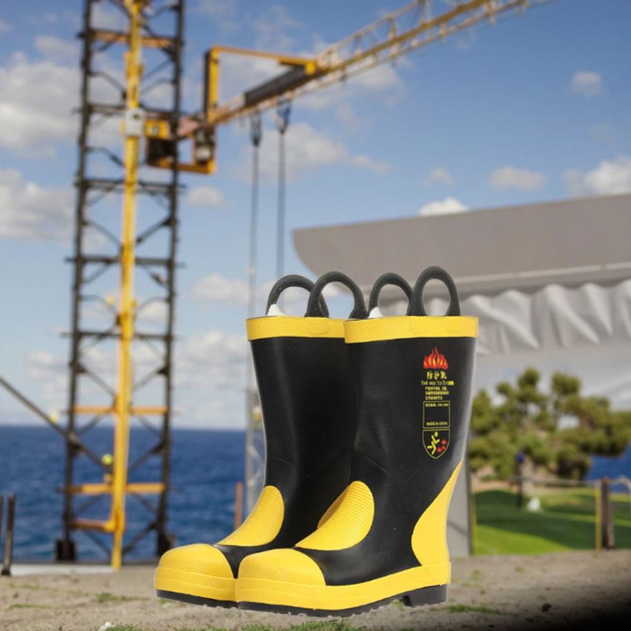 รองเท้าบู๊ตดับเพลิงแบบ 02 สั่งทำได้จากโรงงานโดยตรง ป้องกันน้ำ ทนทานต่อการเจาะทะลุ ป้องกันการกระแทกที่เท้า ทำจากยางและเหล็ก