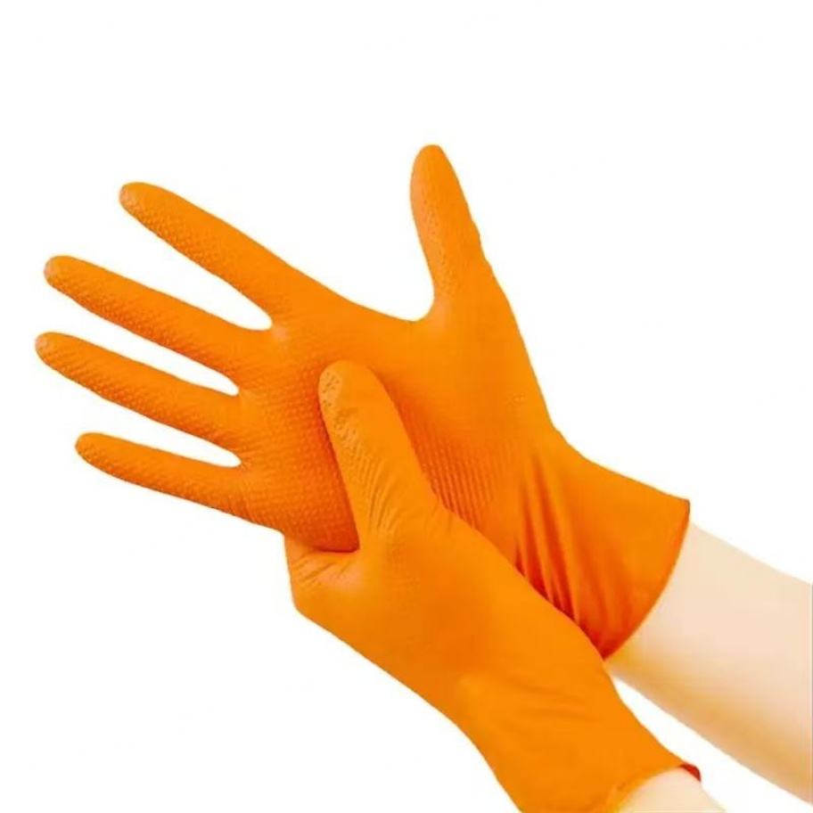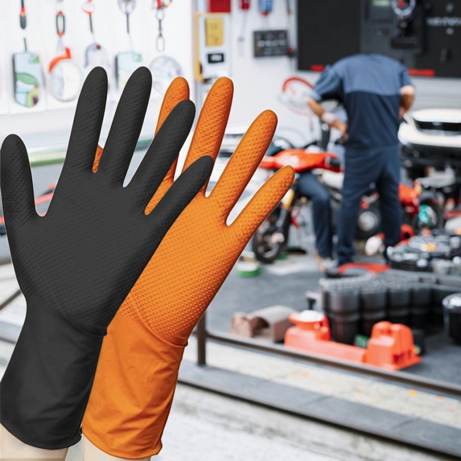ถุงมือกันสารเคมีสำหรับงานหนัก ทนทาน ลายเพชร แบบกำหนดเองได้ พร้อมโลโก้ตามสั่ง จากโรงงานโดยตรง หนา 6-8 มิล ผลิตจากไนไตรล์บริสุทธิ์