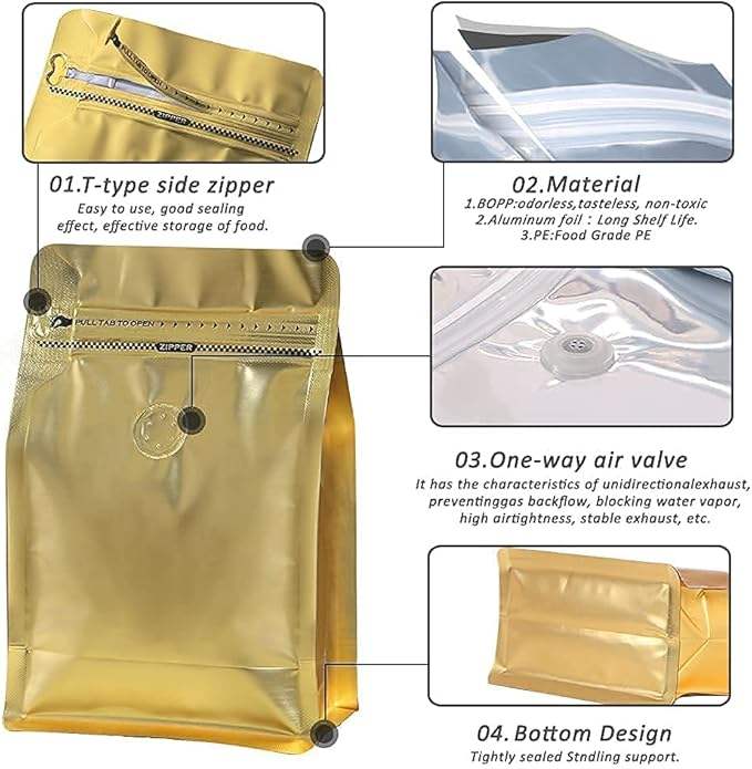ถุงกาแฟ PE แบบปรับแต่งได้สำหรับใช้ในอาหารความจุ250กรัม