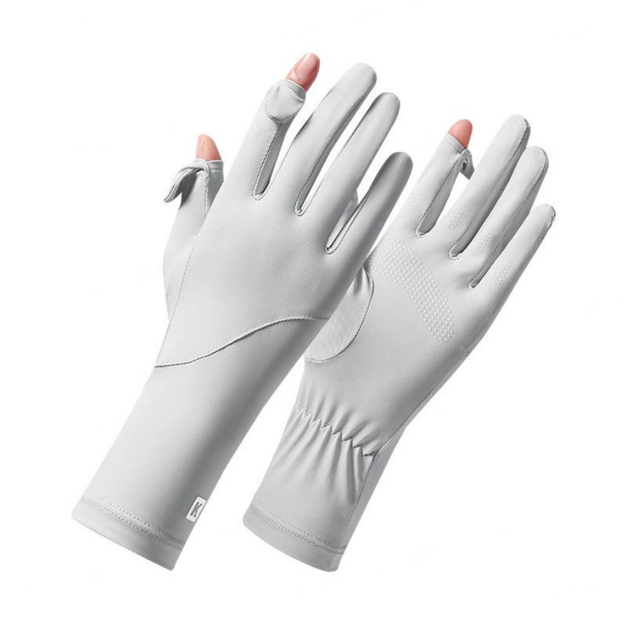 ถุงมือไหมน้ำแข็งสำหรับผู้หญิงแบบยาวปานกลางสำหรับฤดูร้อน ผลิตจากเจียงซี ป้องกันรังสียูวี 7A สำหรับกิจกรรมกลางแจ้ง รับผลิตตามสั่งขายส่งโดยตรงจากโรงงาน ไม่มีการปิดปลายถุงมือ