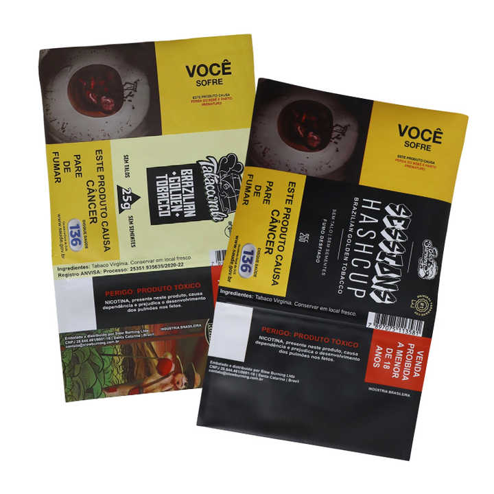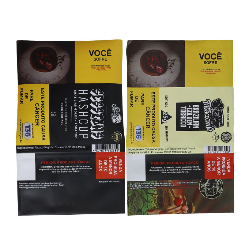 ซองใส่ยาสูบแบบมวนมือ บรรจุภัณฑ์ซิปแบบแบนสีทองลายใบไม้ ผลิตโดยตรงจากโรงงาน รับผลิตตามสั่ง ขนาด 25 กรัม 50 กรัม
