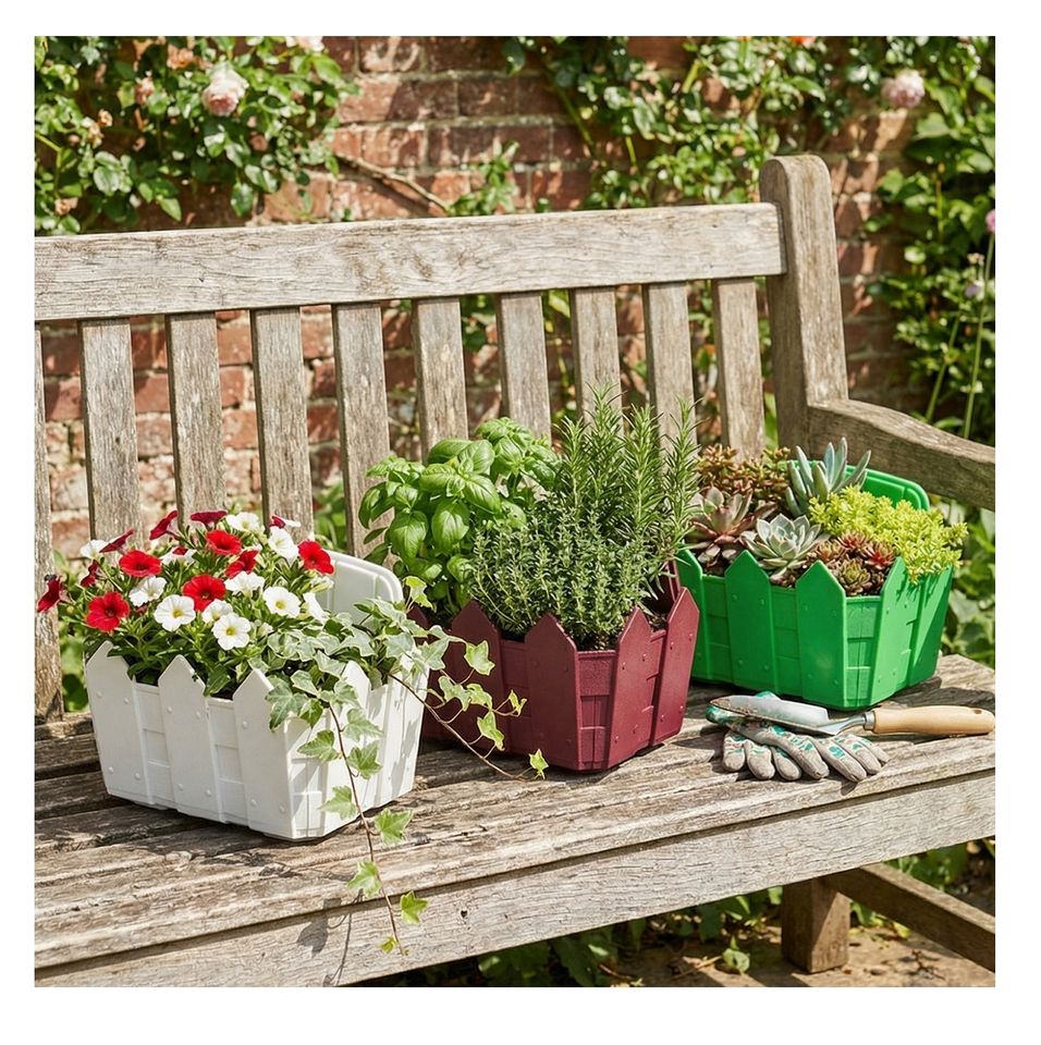 กระถางแขวนผนัง PP ทนทานจากโรงงานโดยตรง ดีไซน์รั้วไม้ สำหรับปลูกดอกไม้ในสวน ระเบียง ลานบ้าน แบบแนวตั้ง
