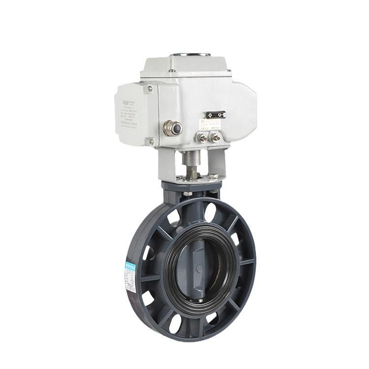 วาล์วผีเสื้อ UPVC ไฟฟ้าจากโรงงานโดยตรง ทนกรดด่าง ผลิตจากพลาสติก PP สำหรับสื่อเชิงน้ำมันและก๊าซ โครงสร้างแบบลูกบอล