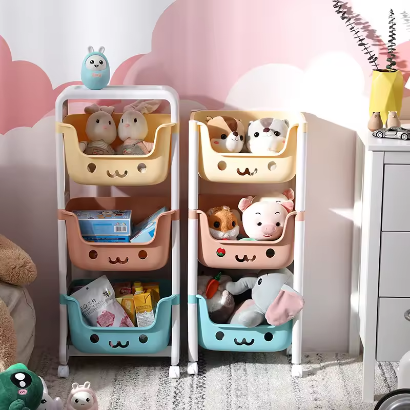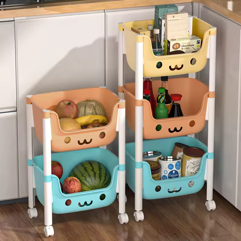 ชั้นวางของในครัวแบบหลายชั้น วัสดุพลาสติก PP เป็นมิตรกับสิ่งแวดล้อม จากโรงงานโดยตรง สำหรับจัดเก็บของใช้ในบ้าน รถเข็นจัดเก็บของเล่น 3 ชั้น