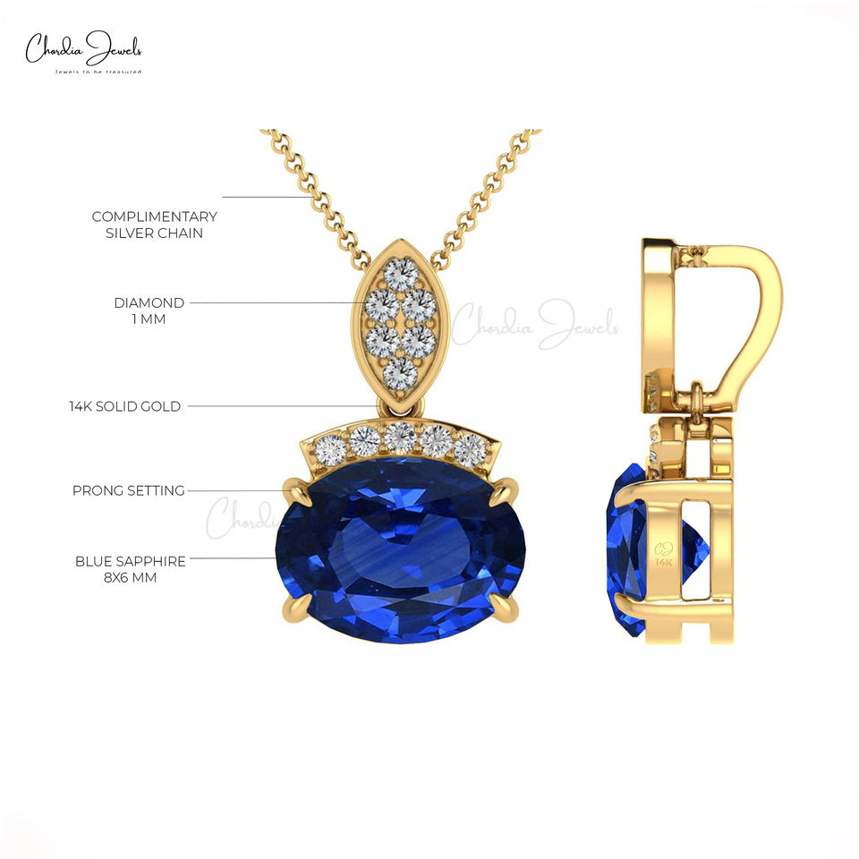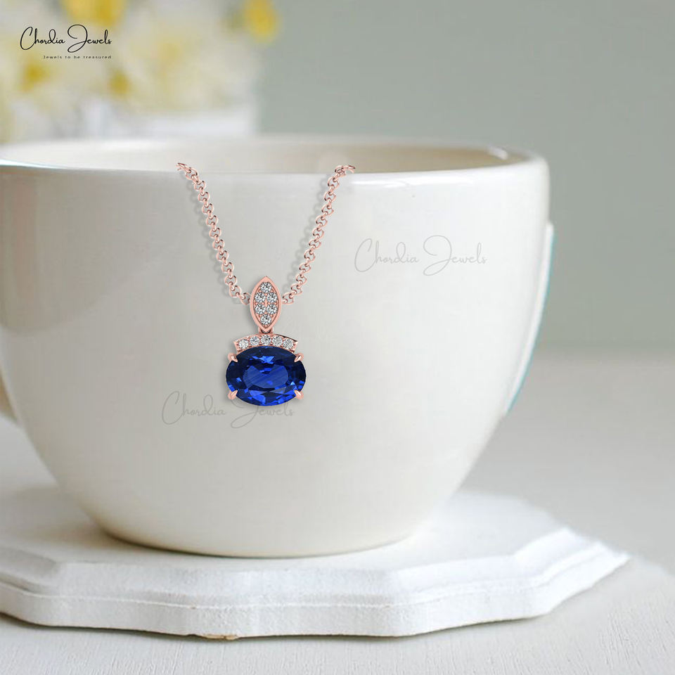 จี้สำหรับงานแต่งงานสีทอง14K ของผู้หญิง1.35จี้แซฟไฟร์สีน้ำเงินแท้ทำด้วยมือขายส่งเพชร