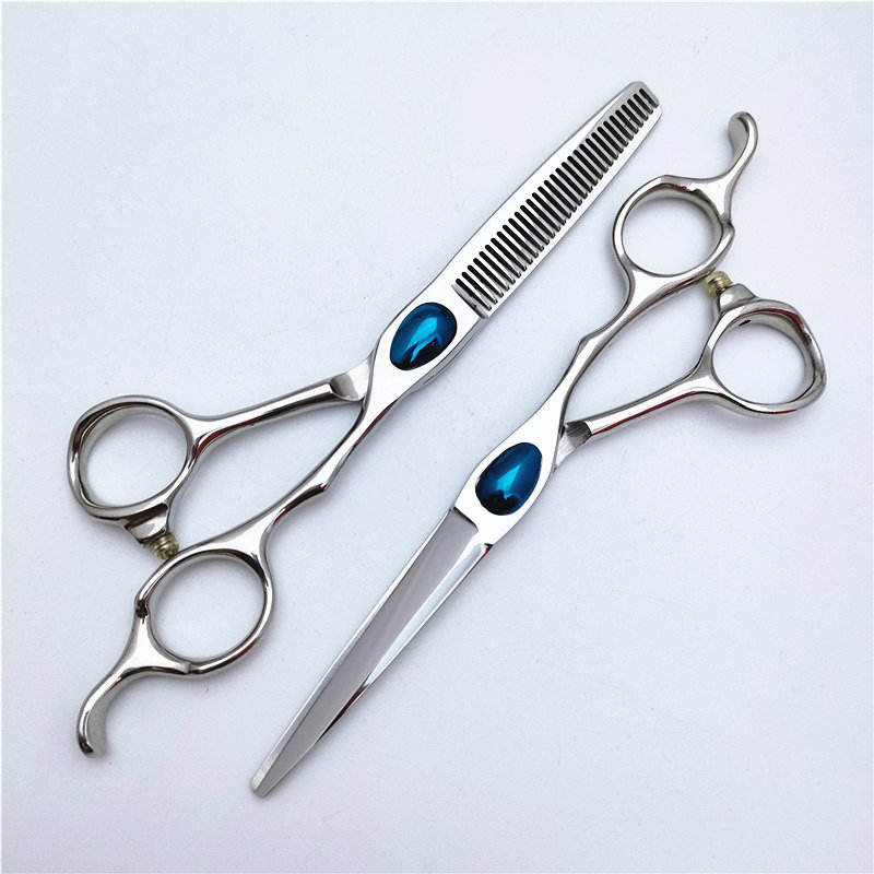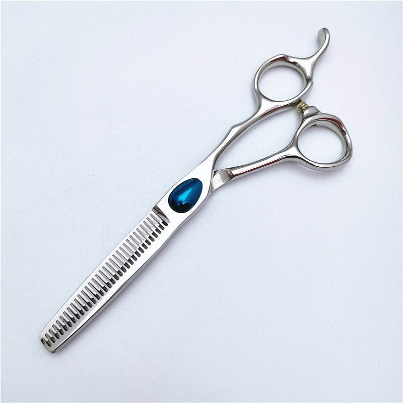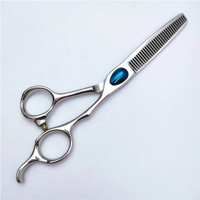 กรรไกรซอยผมตรงจากโรงงาน ขนาด 62 มม. ฝาครอบสีน้ำเงิน สำหรับคนถนัดขวา ใช้ในร้านเสริมสวย ผลิตจากสแตนเลส CF344