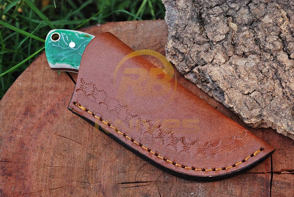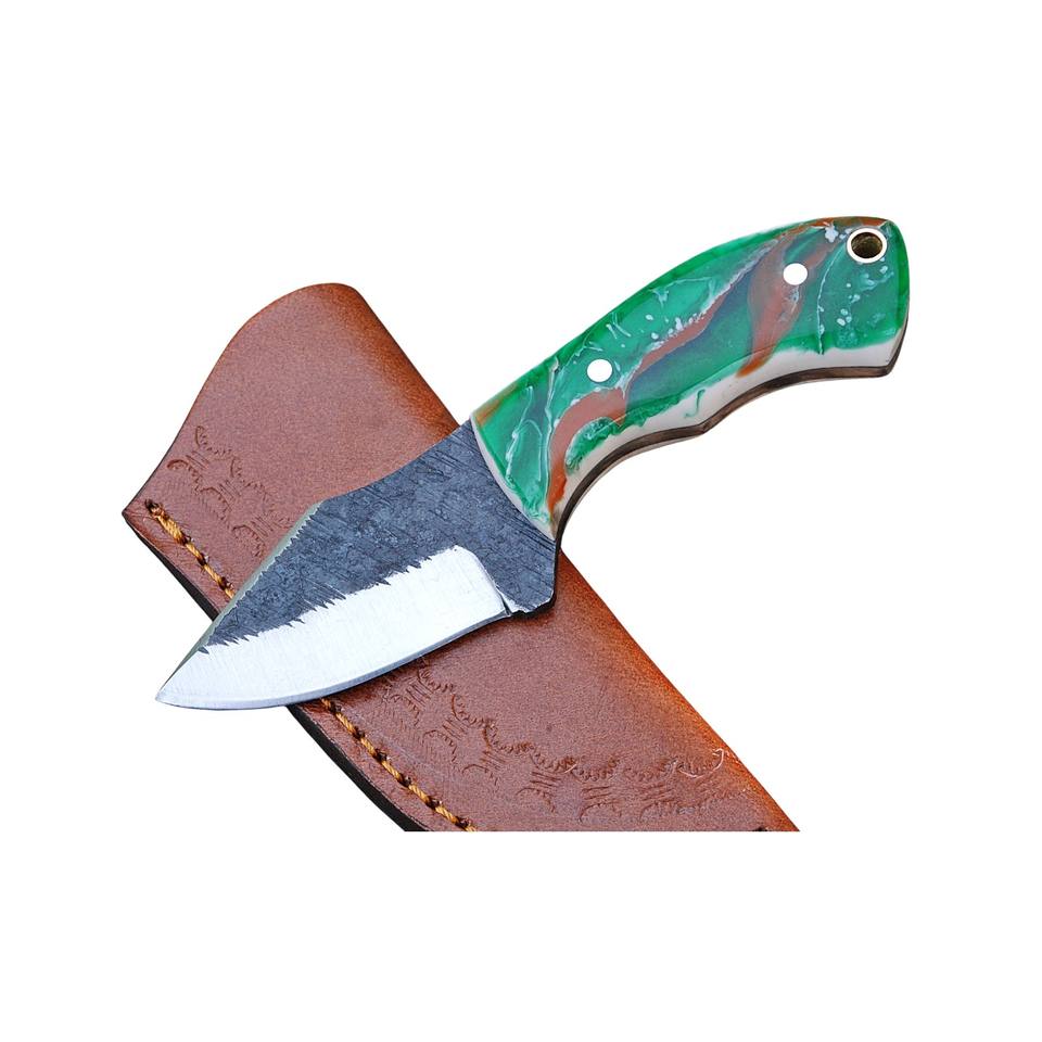 มีดสกินนิ่งทำมือจากเหล็กดามัสกัสคาร์บอนสตีล ผลิตจากโรงงานโดยตรง ด้ามเรซิ่น DIY สำหรับตั้งแคมป์และกิจกรรมกลางแจ้ง EDC รับผลิตตามแบบ OEM
