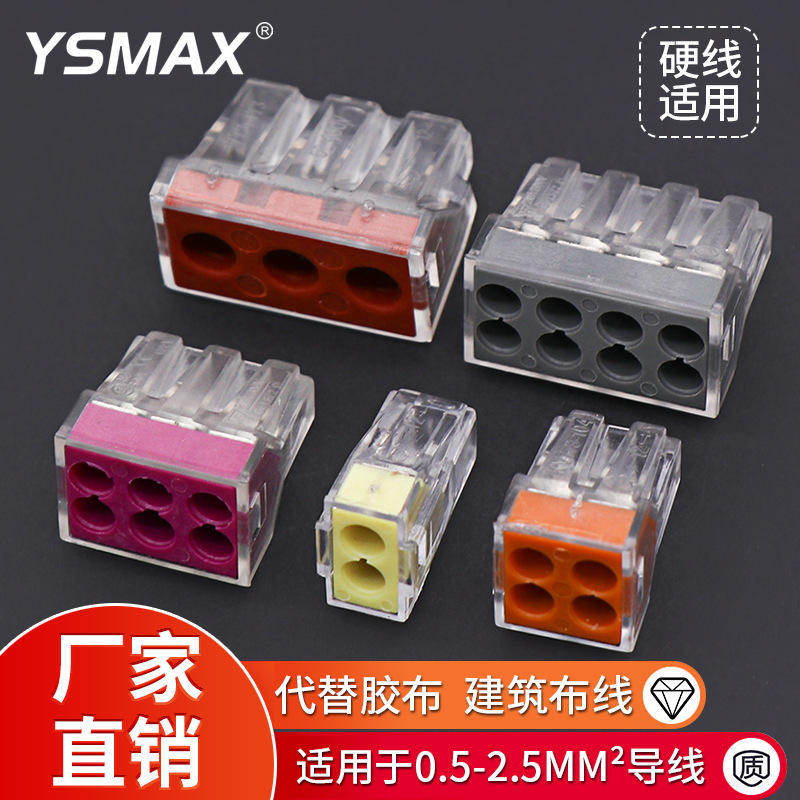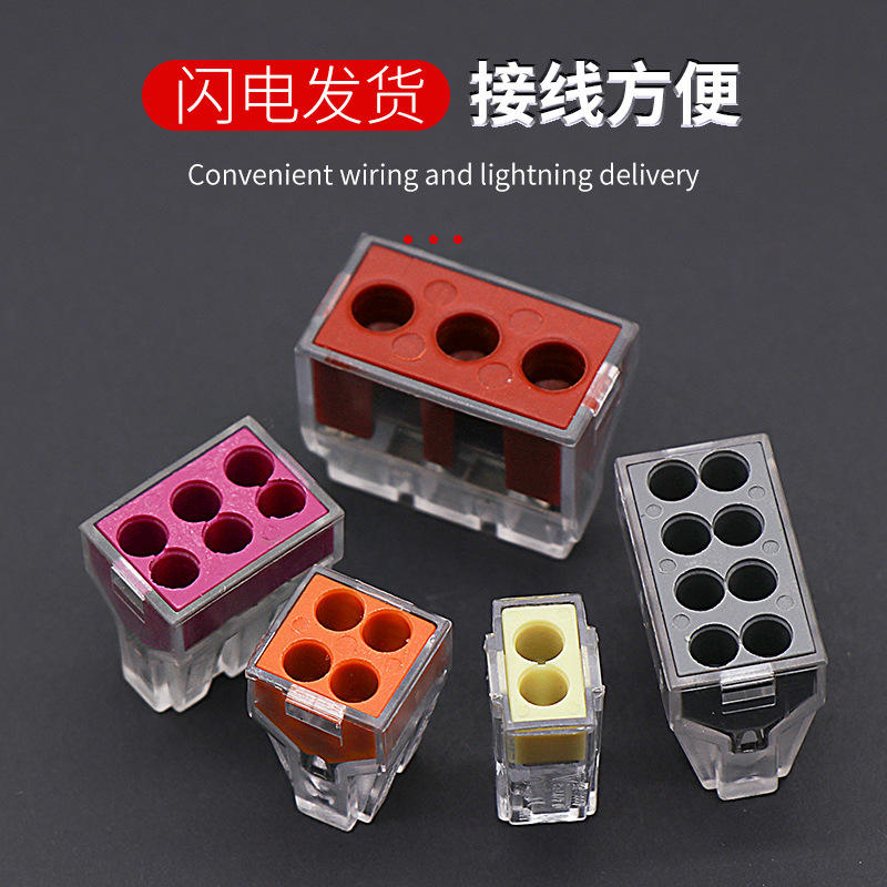 เทอร์มินัลบล็อกแบบแข็งสำหรับสายไฟตรงจากโรงงาน รุ่น 773 หน้าสัมผัสทองแดง ตัวเชื่อมต่อแบบเสียบปลั๊ก วัสดุหุ้มไนลอน สำหรับการเดินสายไฟฟ้า