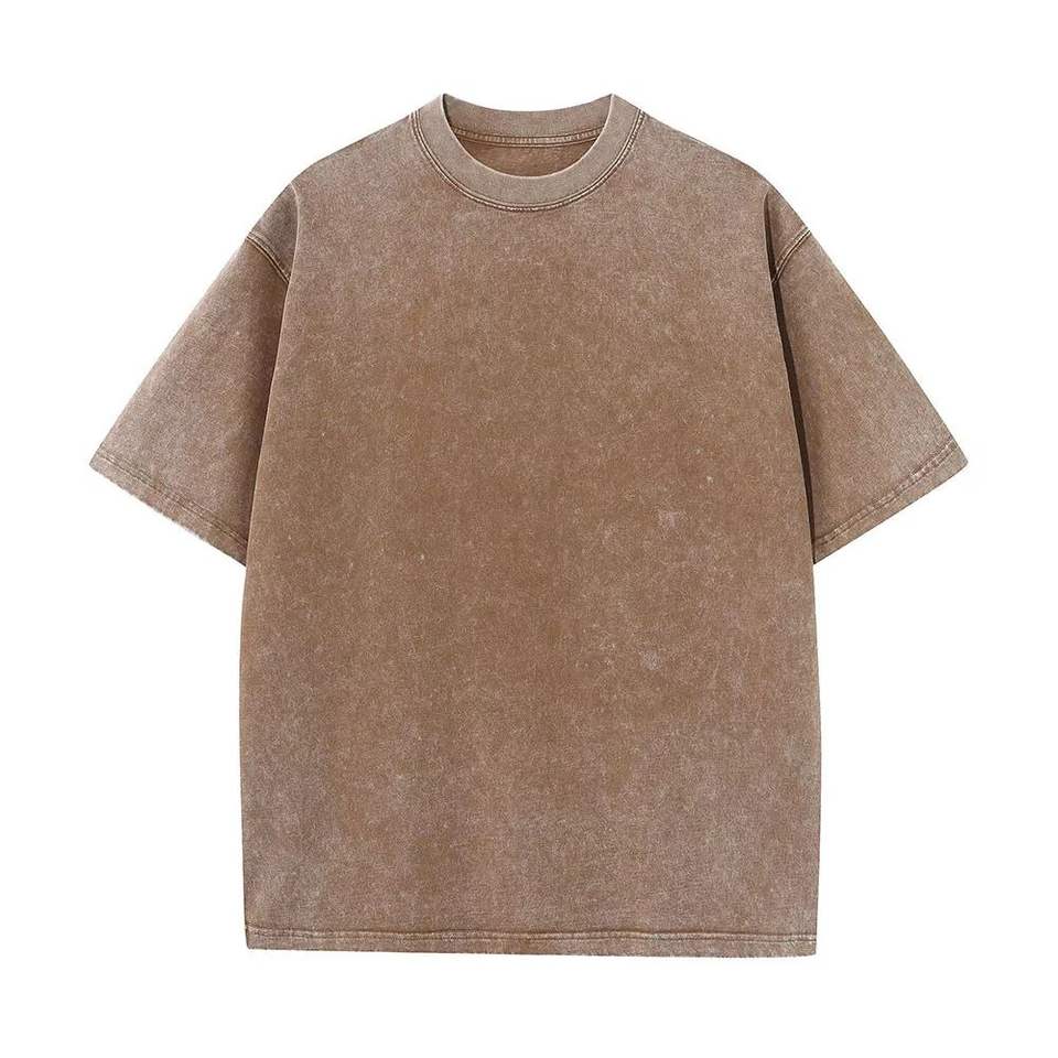 เสื้อยืดผ้าฝ้าย100% ฟอกสีวินเทจสำหรับผู้ชายทรงหลวมแขนสั้นผ้าดิบแบบลำลองออกแบบได้ตามที่ต้องการ