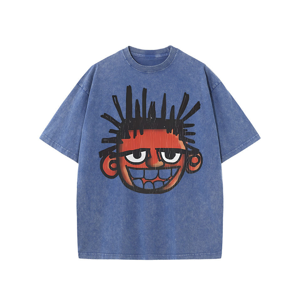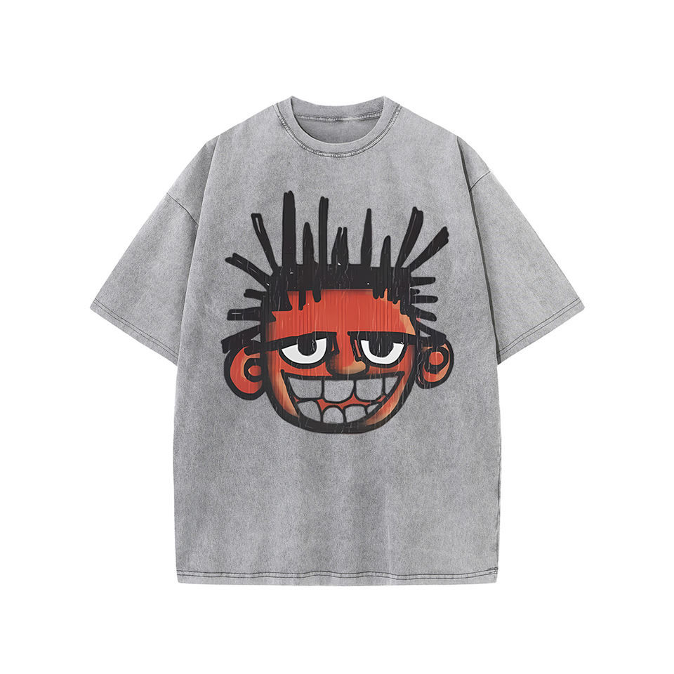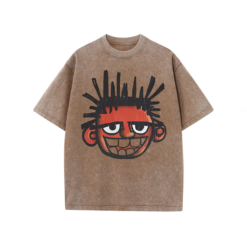 เสื้อยืดผู้ชายสไตล์เรโทรพิมพ์ลายฟอกสี คุณภาพสูงจากโรงงานโดยตรง ผลิตจากผ้าฝ้าย 100% แฟชั่นแนวสตรีท ขายส่ง