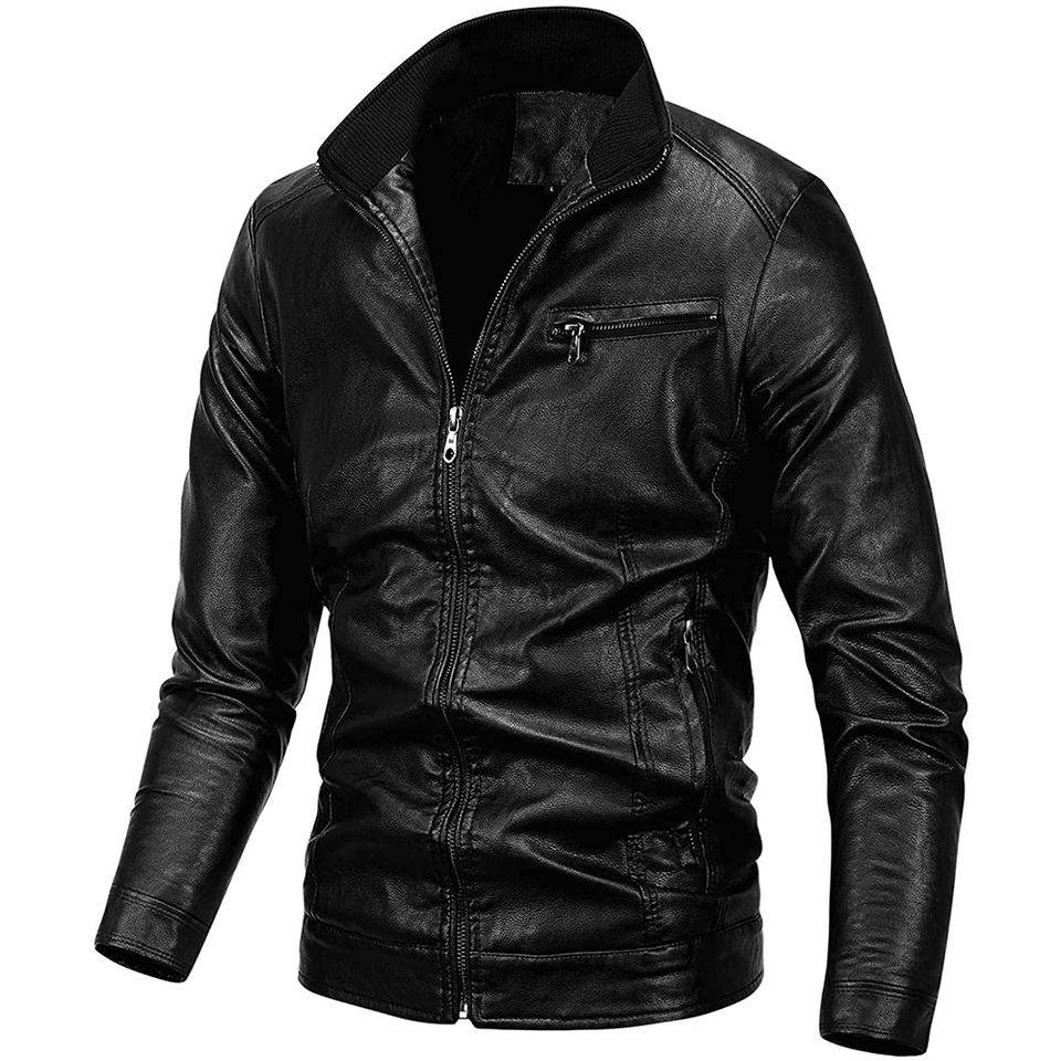 แจ็กเก็ตหนังซิปไซส์ใหญ่สำหรับผู้ชายเสื้อโค้ทหนัง