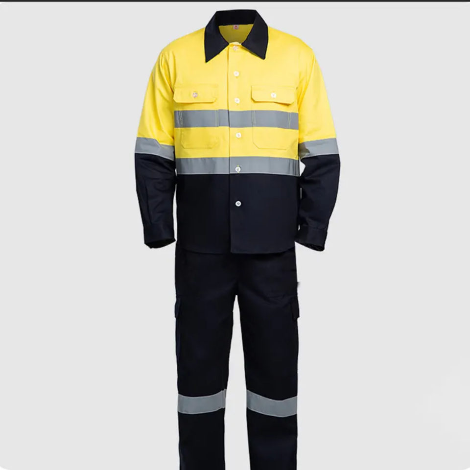 ชุดยูนิฟอร์มทำงานผ้าโพลีเอสเตอร์ทนไฟ ระบายอากาศดี มองเห็นได้ชัดเจน ผลิตจากโรงงานโดยตรง กันน้ำ ทนทาน แบบสองชิ้น สำหรับทุกเพศ