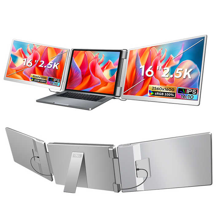 จอภาพพกพาแบบสามจอขนาด 16 นิ้ว ความละเอียด 2.5K 16:10 สำหรับแล็ปท็อป HDMI พร้อมแผง IPS ราคาสุดคุ้ม ขายร้อนแรงจากโรงงานโดยตรง