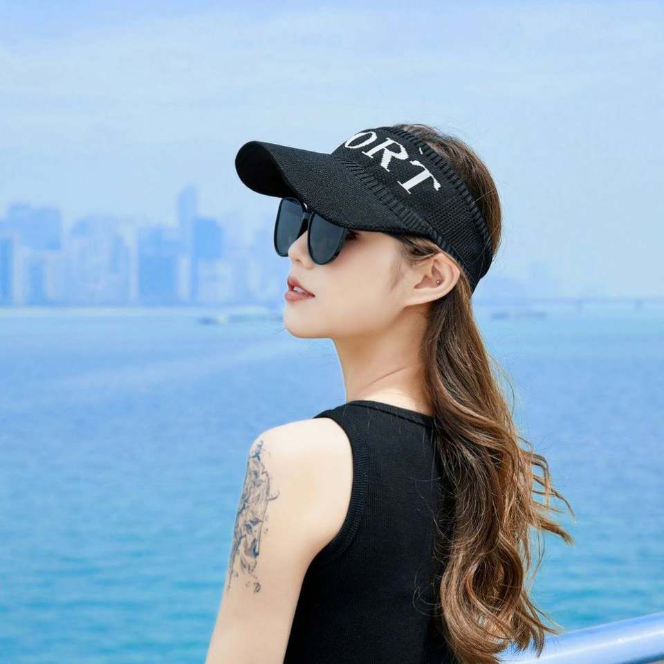 หมวกบังแดดถักลายตัวอักษร