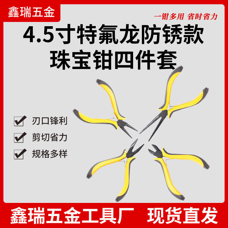 ชุดคีมทำเครื่องประดับจากโรงงานโดยตรง ขนาด 4.5 นิ้ว คีมปากแหลม ด้ามจับสีเหลืองดำ ทำจากสแตนเลส สำหรับงาน DIY และงานฝีมือ