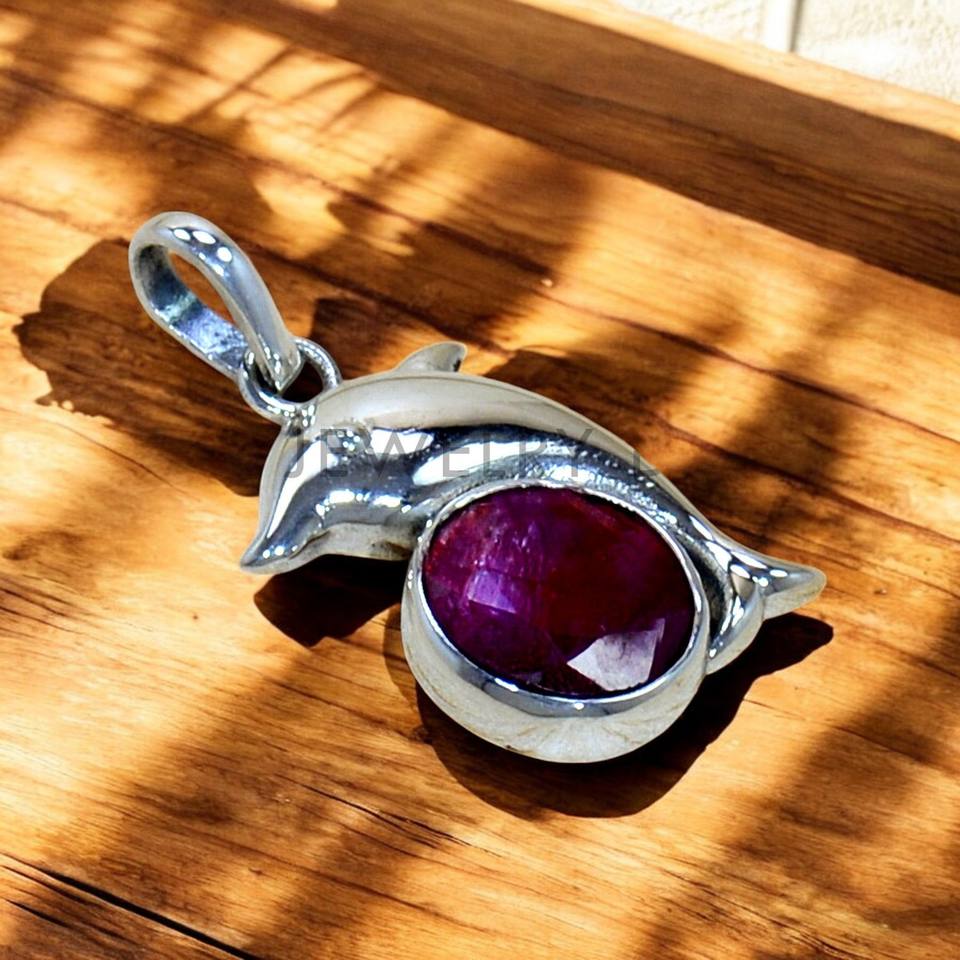 925 Sterling Silver Round Brilliant Cut Ruby Silver Pendant Necklace Stunning Jewelry Gift for Women for Parties and Weddings