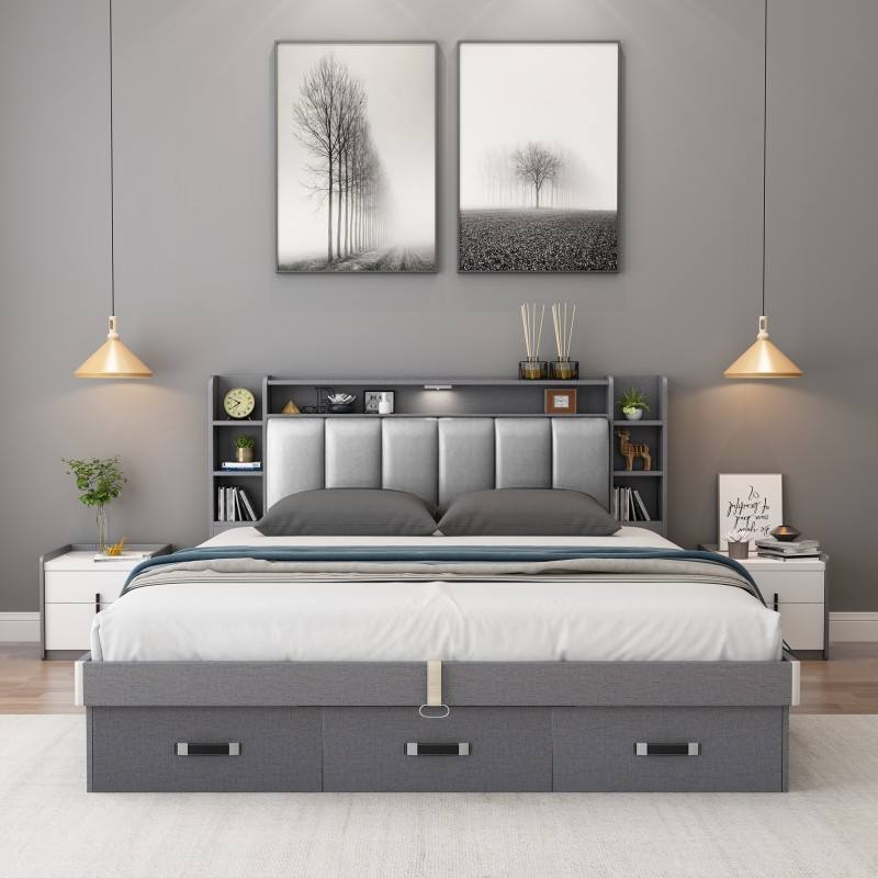 เตียงไม้หุ้มหัวเตียงห้องนอนเป็นมิตรต่อสิ่งแวดล้อมสำหรับห้องเก็บเตียงขนาดควีนไซส์ทันสมัยออกแบบได้ตามต้องการ