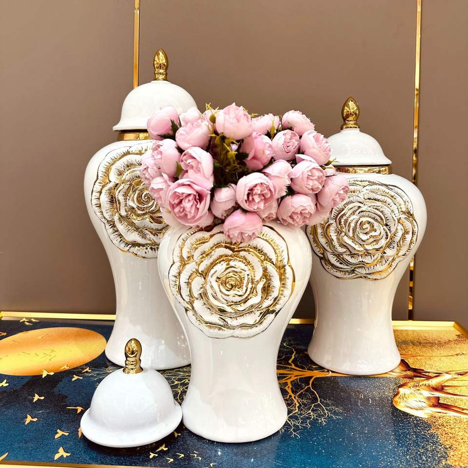 Factory Direct Luxury Flower Vase, Decorative Wedding Centerpiece Vase, Golden Ceramic GingerJar Table for Hotel