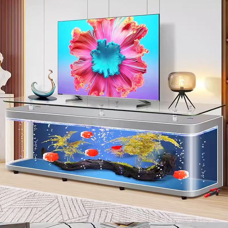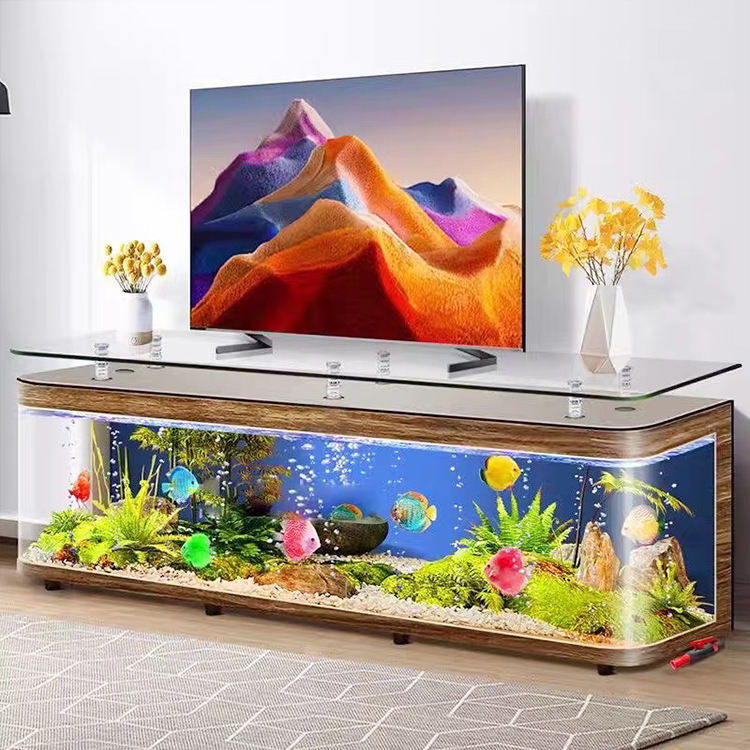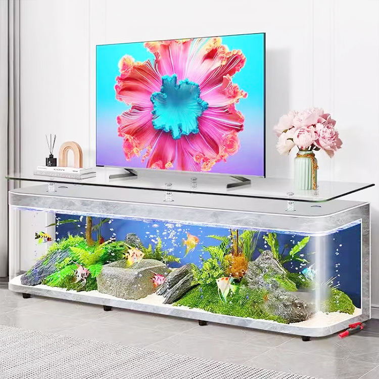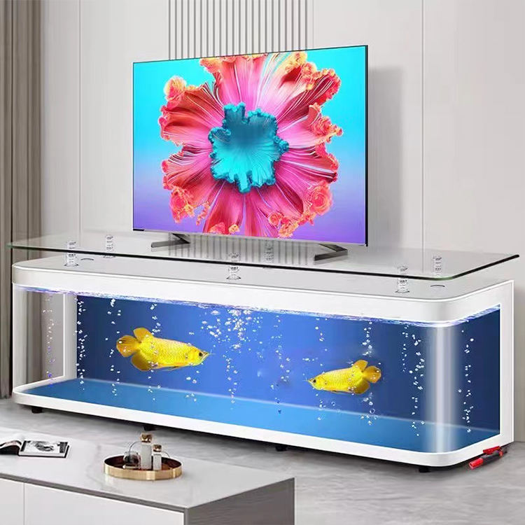 โต๊ะกระจกตู้ปลาทรงสี่เหลี่ยมผืนผ้าตู้วางทีวีทำจากพลาสติกสี่เหลี่ยมใช้ในบ้านเฟอร์นิเจอร์ปลาทองหรูหราตรงจากโรงงาน