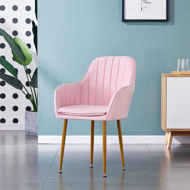 เก้าอี้ทานอาหารกำมะหยี่สีชมพูหรูหราจากโรงงานโดยตรง ปลอกหุ้มถอดได้ ขาโลหะสีทอง ดีไซน์ทันสมัย สำหรับโรงแรม บ้าน บาร์ สำนักงานที่บ้าน