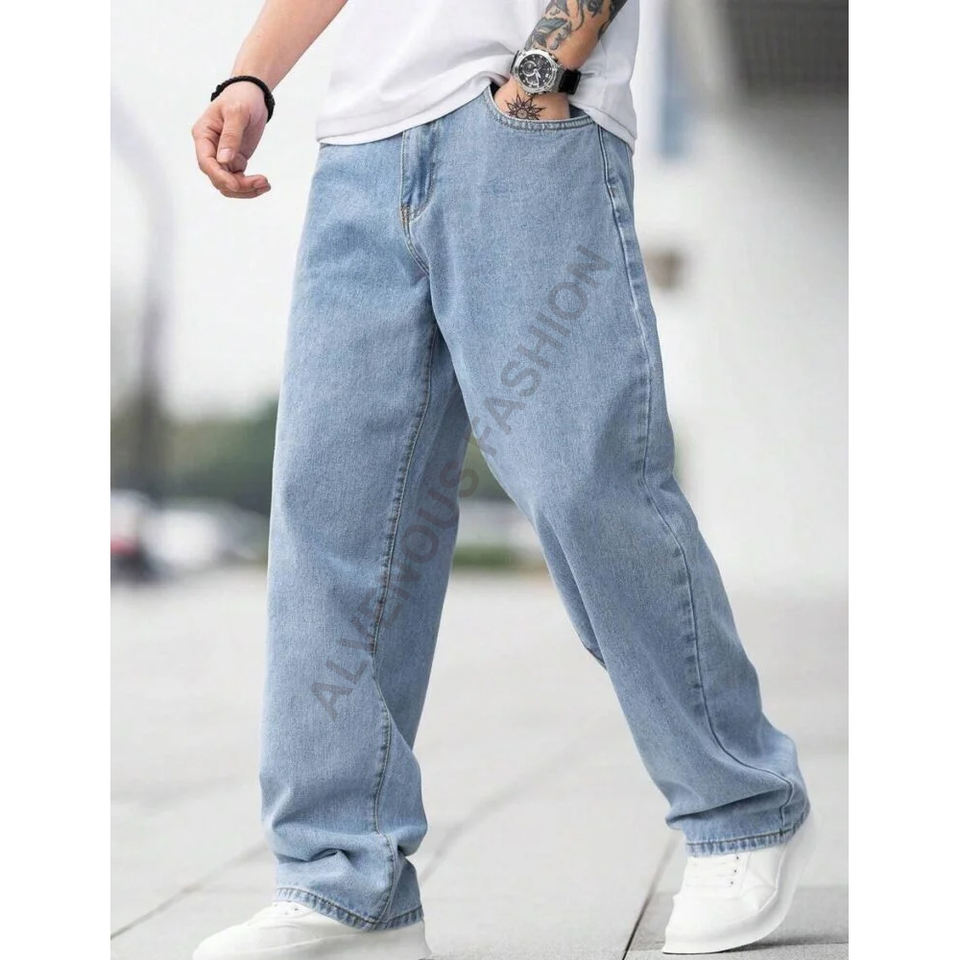 กางเกงยีนส์ขาตรงสำหรับผู้ชาย, กางเกงผ้าเดนิมแบบลำลองมีกระดุมระบายอากาศสีพื้นสำหรับฤดูใบไม้ร่วง