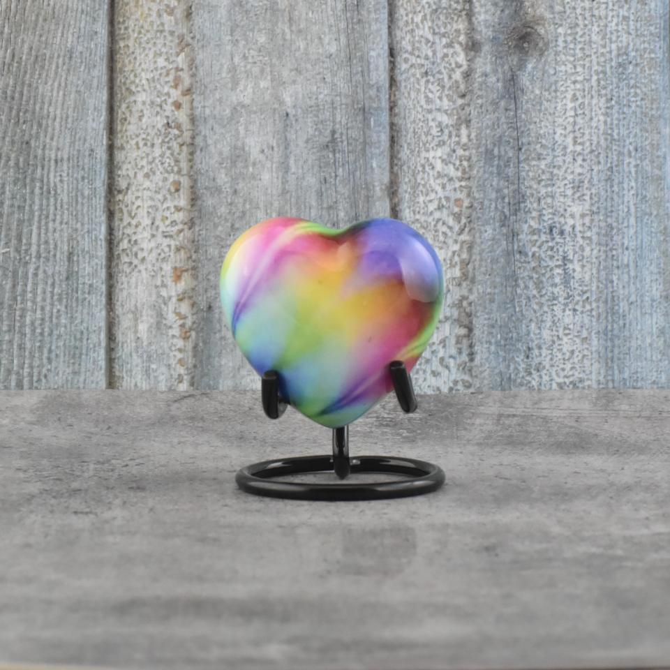 โกศใส่ศพโลหะเคลือบสีรุ้งเคลือบหลายสีเฉพาะโกศหัวใจที่ระลึกโลหะ