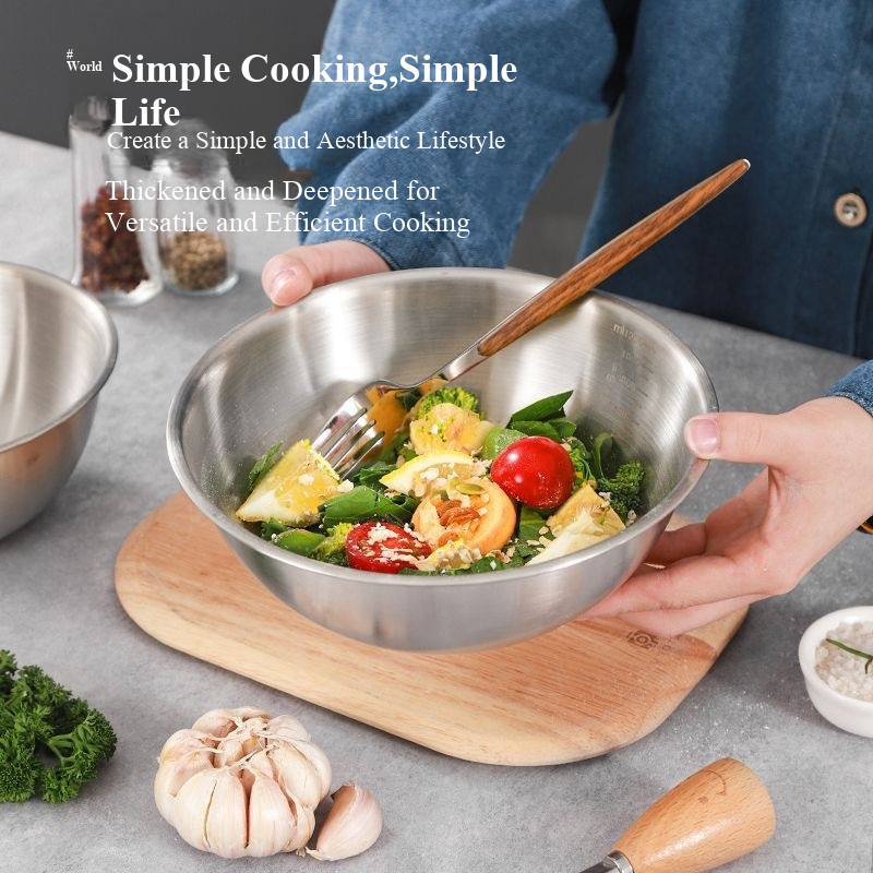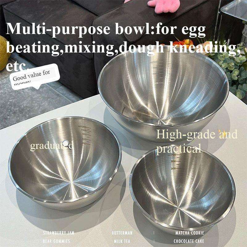 อุปกรณ์ทำขนมสแตนเลสเกาหลีหลายขนาดจากโรงงานโดยตรง พร้อมชามผสมแบบมีขีดบอกปริมาตร