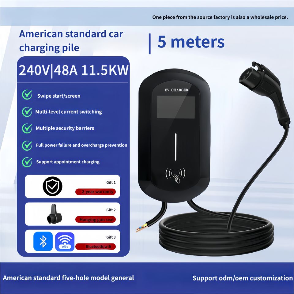 เครื่องชาร์จรถยนต์ไฟฟ้ามาตรฐานอเมริกา 11.5kW ใหม่จากโรงงานโดยตรง 48 พอร์ตเชื่อมต่อ สายยาว 5 เมตร รองรับ WiFi Type1 AC-48A 110-400V คุณภาพสูง