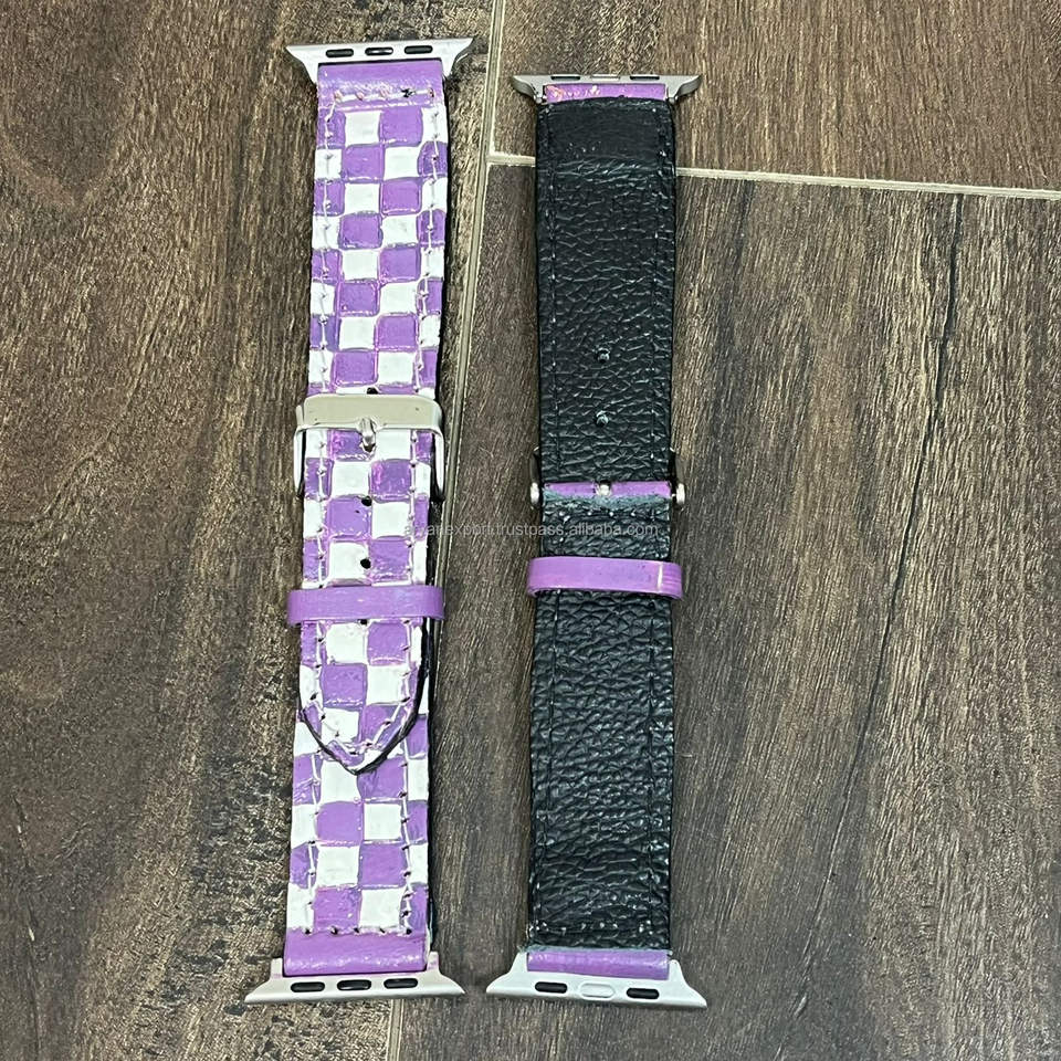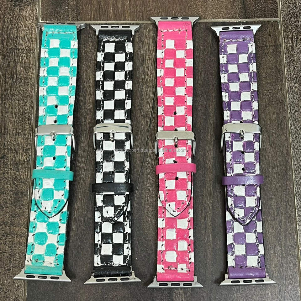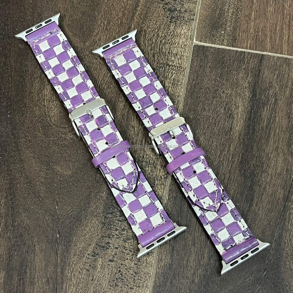 Product name:Hand Tooled Checkered Leather Smart Watch Band