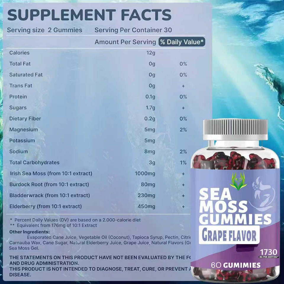 อาหารเสริมสาหร่ายบลัดเดอร์แร็คจากโรงงานโดยตรง สำหรับการผลิตพลังงาน รสองุ่น ผสมเอลเดอร์เบอร์รี่และสาหร่ายทะเล แบบเยลลี่