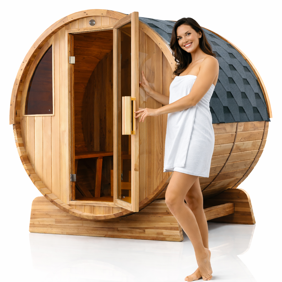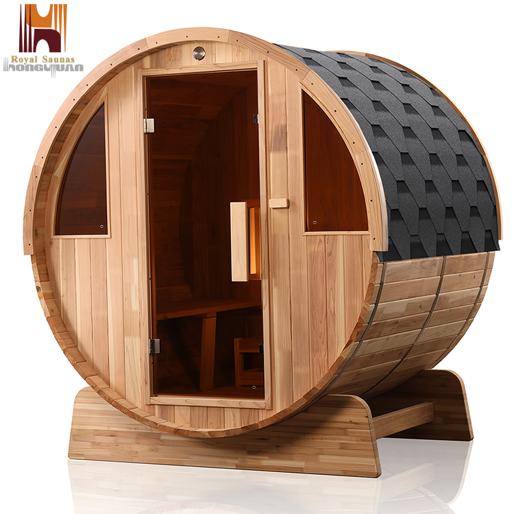 Factory Direct Modern Outdoor Wood Barrel Sauna Room 4 Person Japanese Cedar Eco-Friendly Harvia Stove No Electricity USA