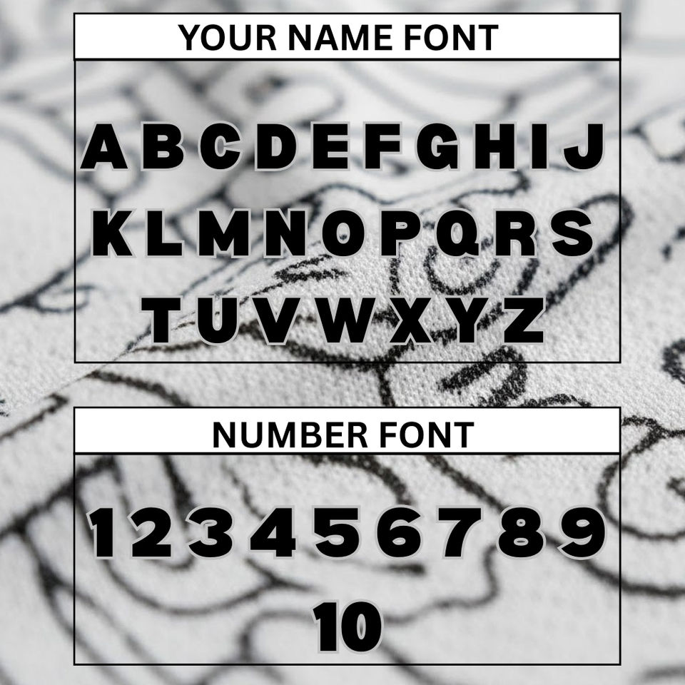 ประเภท รูปแบบ:3D, เสือดาว, สัตว์, สีพื้น, ตัวละคร, พิมพ์, จุด, ล้อมรอบ, บล็อกสี, ไล่ระดับสี, ชื่อผู้เล่น, ชื่อทีม, หมายเลขทีม