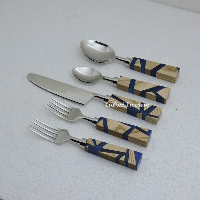 ชุดช้อนส้อมสแตนเลส 304 ชุบเงิน ดีไซน์ทันสมัย ขายดี คุณภาพสูง ด้ามจับลายไม้หินอ่อนสีขาว 5 ชิ้น