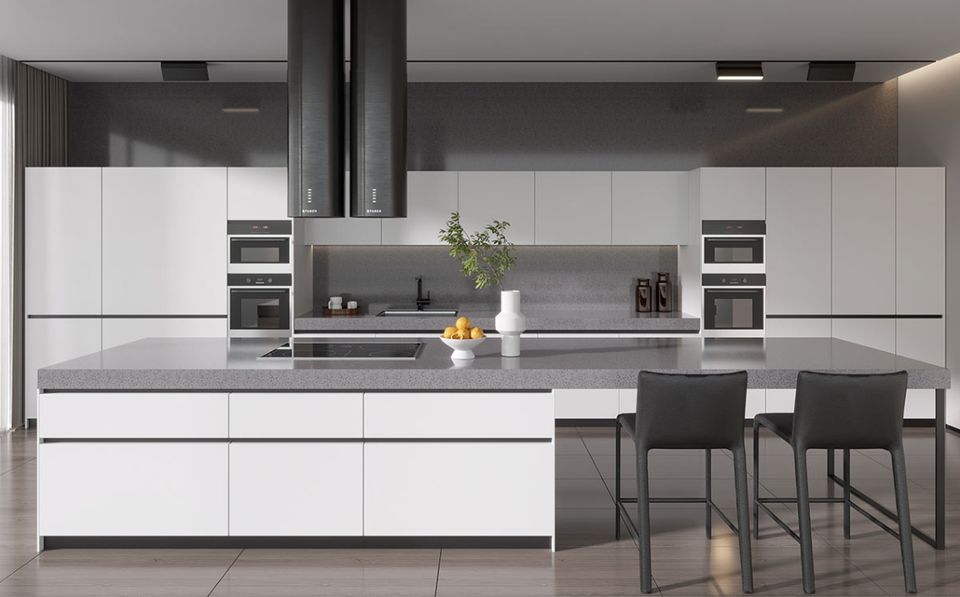 แผ่นหินเทียมควอทซ์ Calacatta สไตล์โมเดิร์นตัดเป็นขนาด5 + ปีรับประกันจากโรงงานโดยตรงเคาน์เตอร์ห้องครัว