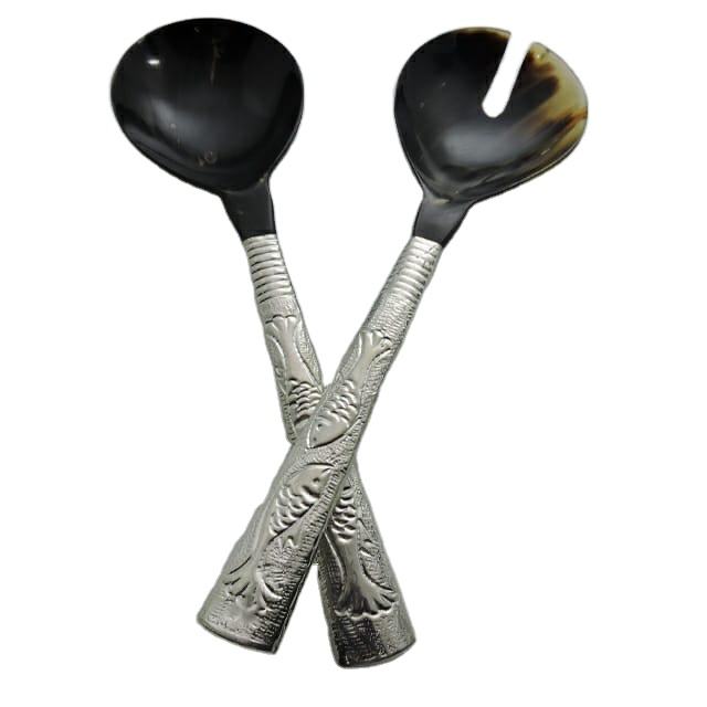 ชุดเสิร์ฟสลัดหรูหราขนาด12นิ้ว,ฮอร์นดีไซน์พรีเมียมพร้อมสารเคลือบสีเงิน