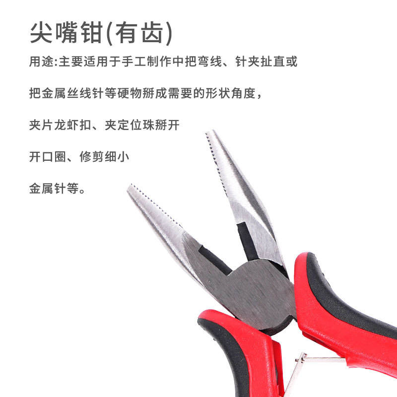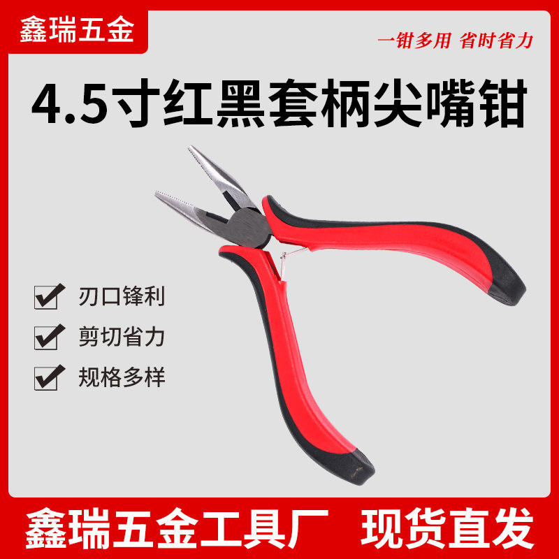 คีมปากแหลมสีแดงดำจากโรงงานโดยตรง ขนาด 4.5 นิ้ว ผลิตจากเหล็กโครเมียมวาเนเดียม ปากหยัก ปลายแหลม คีมขนาดเล็กสำหรับงาน DIY