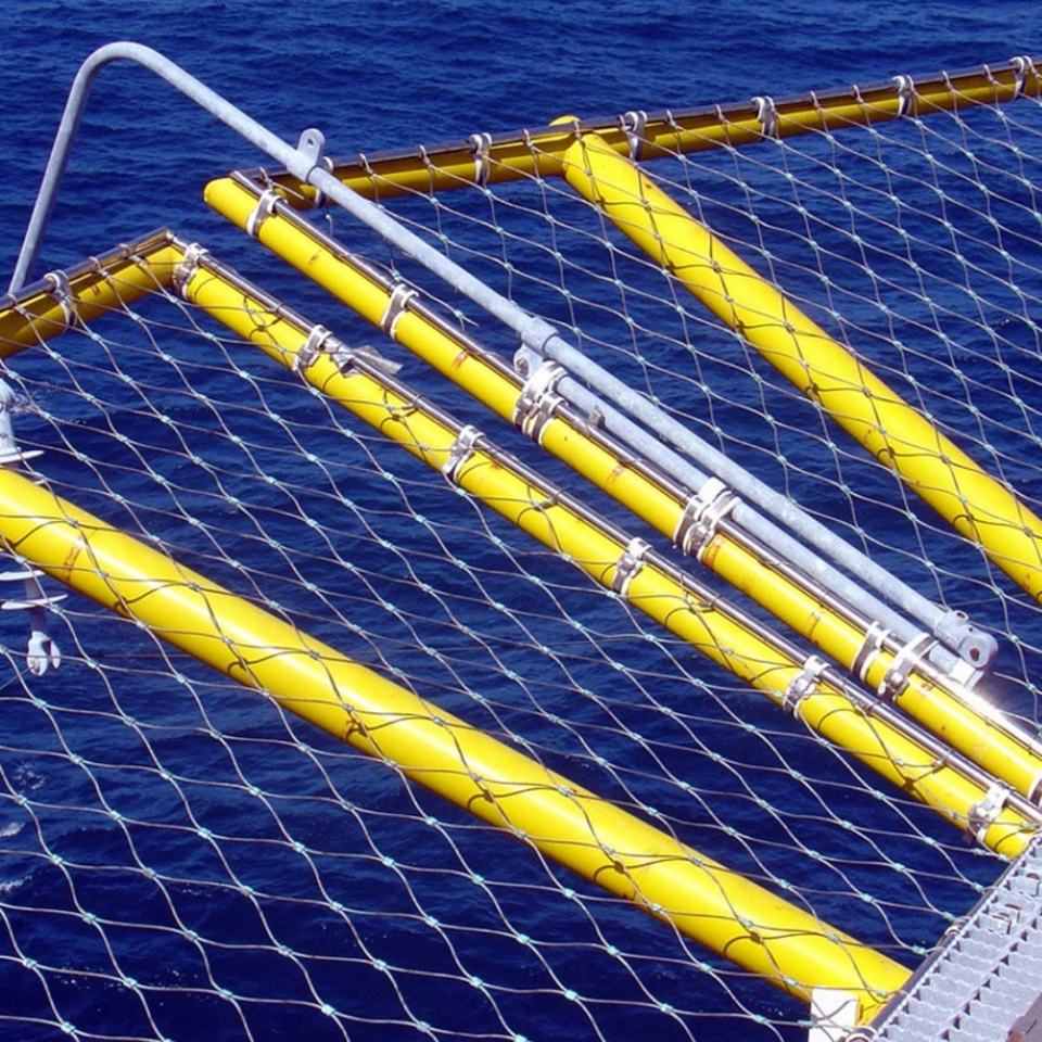 รั้วตาข่ายเชื่อมแบบโซ่ H&F HF-CLF003 จากโรงงานโดยตรง ผลิตจากสแตนเลส SS316 สำหรับป้องกันขอบดาดฟ้าเฮลิคอปเตอร์ พร้อมตาข่ายนิรภัยและเชือกนิรภัยแบบกันตก ชุบสังกะสี