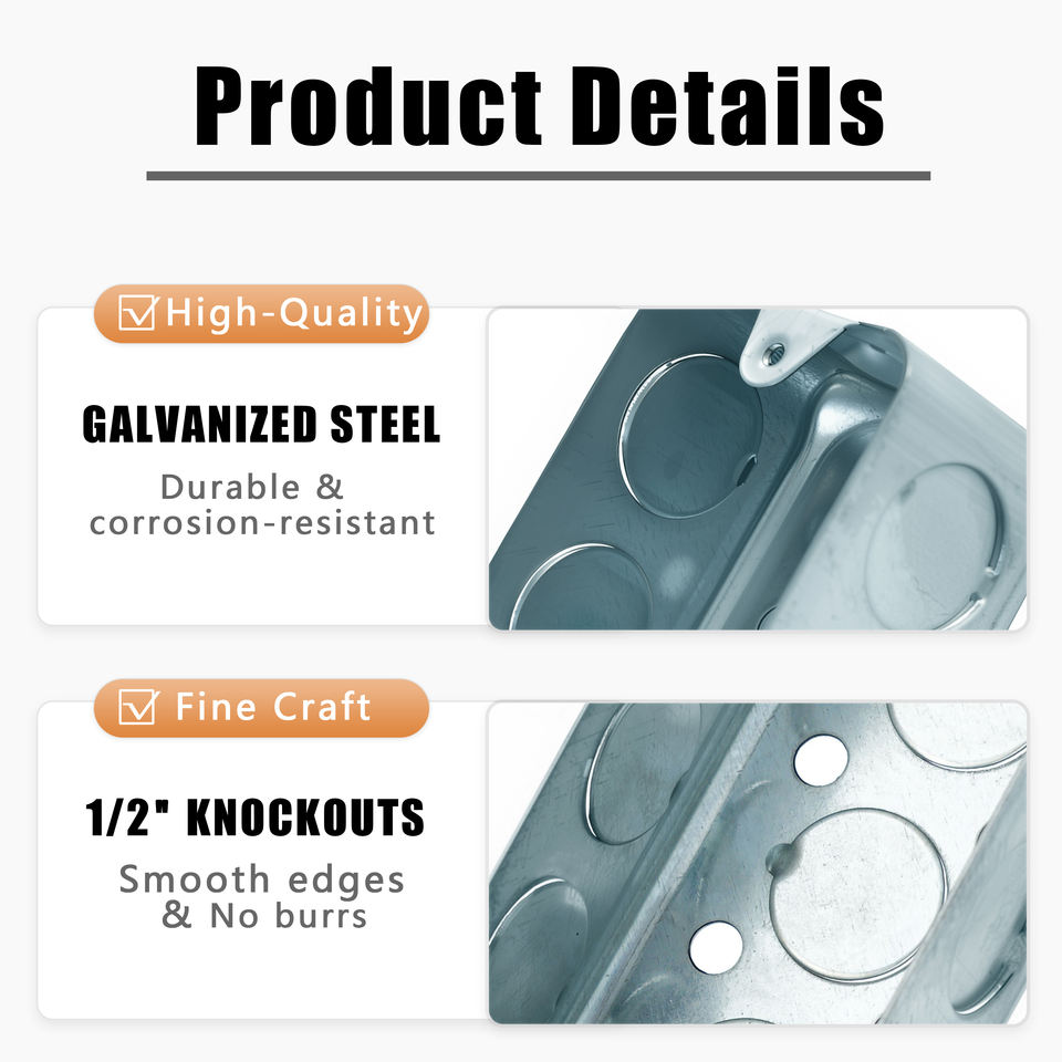 ขายตรงจากโรงงานกล่องสวิตช์ไฟฟ้าเหล็กชุบสังกะสี 2x4 มาตรฐานอเมริกันพร้อมใบรับรอง Ul