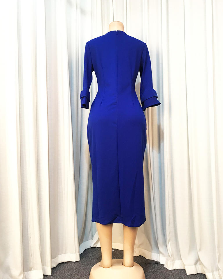 สูงเอว V คอจีบ Slit PLUS ขนาด Office Office Lady ชุด