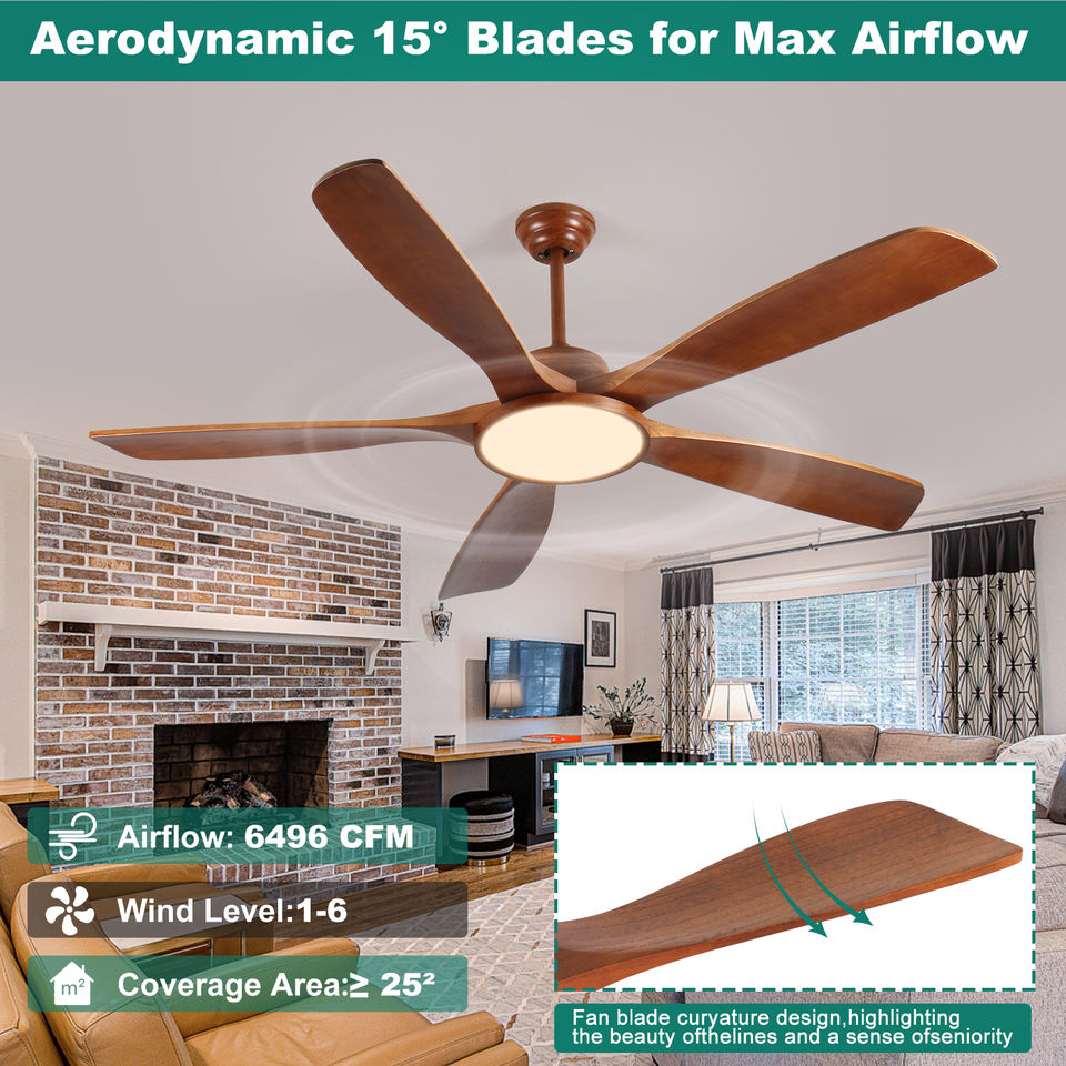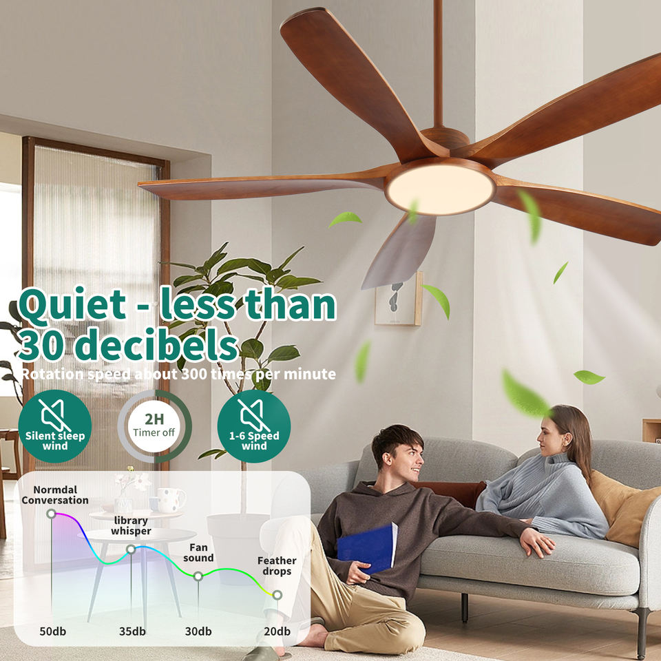 พัดลมเพดานไม้ DC ปรับแต่งได้สำหรับบ้านและโรงแรม5ใบมีดรีโมทคอนโทรล
