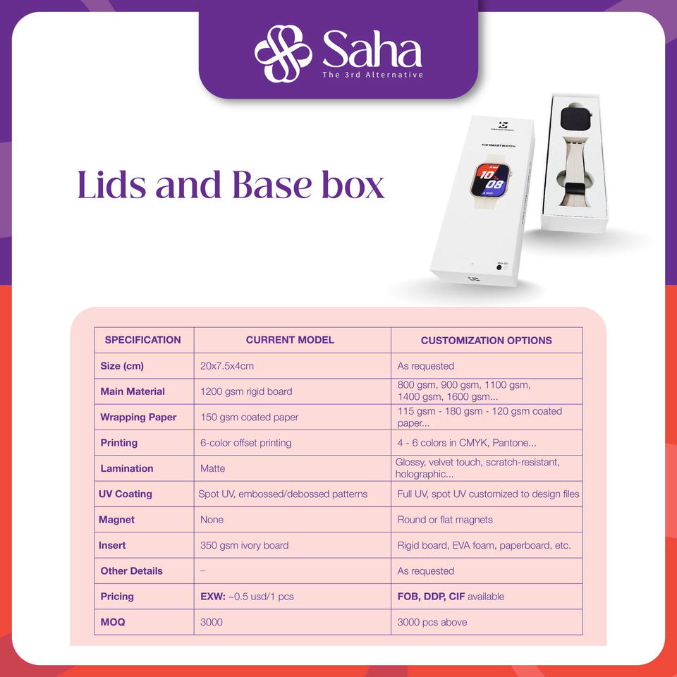 กล่องของขวัญกระดาษแข็งคราฟท์บรรจุภัณฑ์พรีเมี่ยมสำหรับสายนาฬิกาอิเล็กทรอนิกส์อัจฉริยะเคลือบด้านที่หายไปจากผู้ผลิตในเวียดนาม