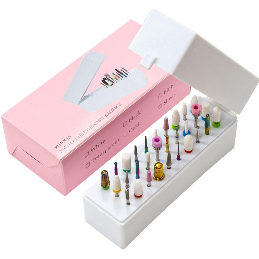 Factory Direct Sale Durable Nail Drill Bits Storage Box with 30 Holes Organizer Carbide & ABS Material