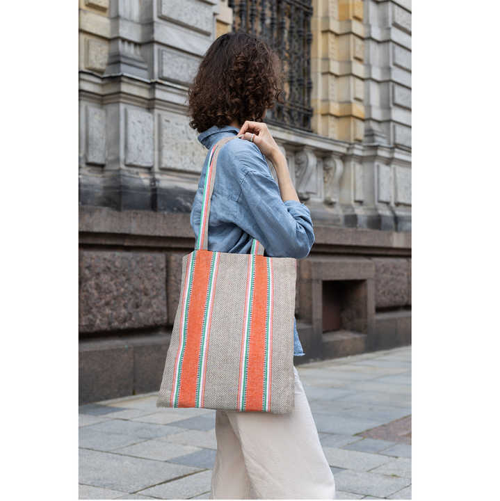 ขายตรงจากโรงงาน กระเป๋าช้อปปิ้งสายสะพายไหล่ลายทางย้อมเส้นด้าย ดีไซน์ใหม่สุดฮิต สีสันตามสั่ง ผ้าฝ้าย 100% ราคาถูก