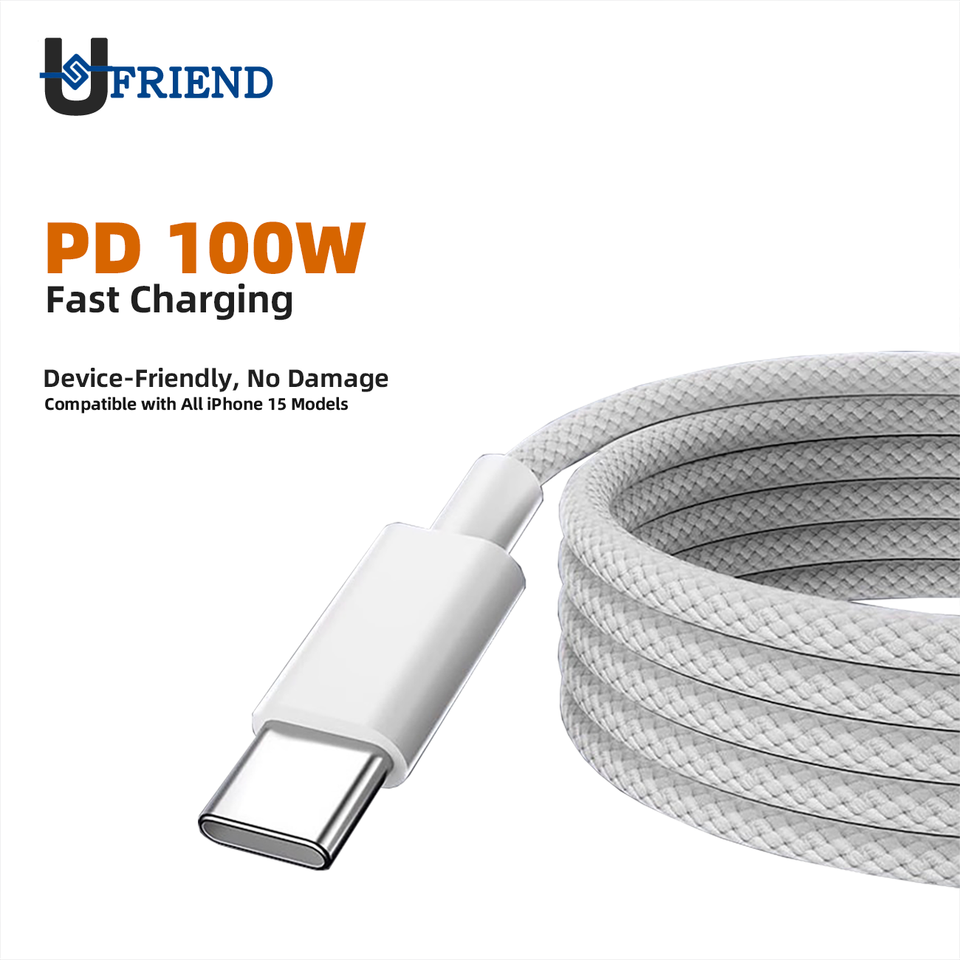 สายชาร์จเร็วแบบถักไนลอน 5A 100W PD ชาร์จเร็ว สายถ่ายโอนข้อมูล Type C ทองแดงแท้ ขายตรงจากโรงงาน