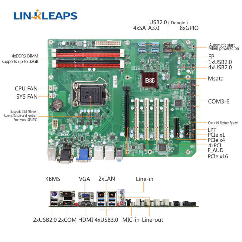 เมนบอร์ดอุตสาหกรรม ATX ทรงพลัง ขายตรงจากโรงงาน ชิปเซ็ต B85 รองรับซ็อกเก็ต LGA1150 สำหรับซีพียู Intel Core I7/I5/I3 รุ่นที่ 4 รองรับแรม DDR3 4GB