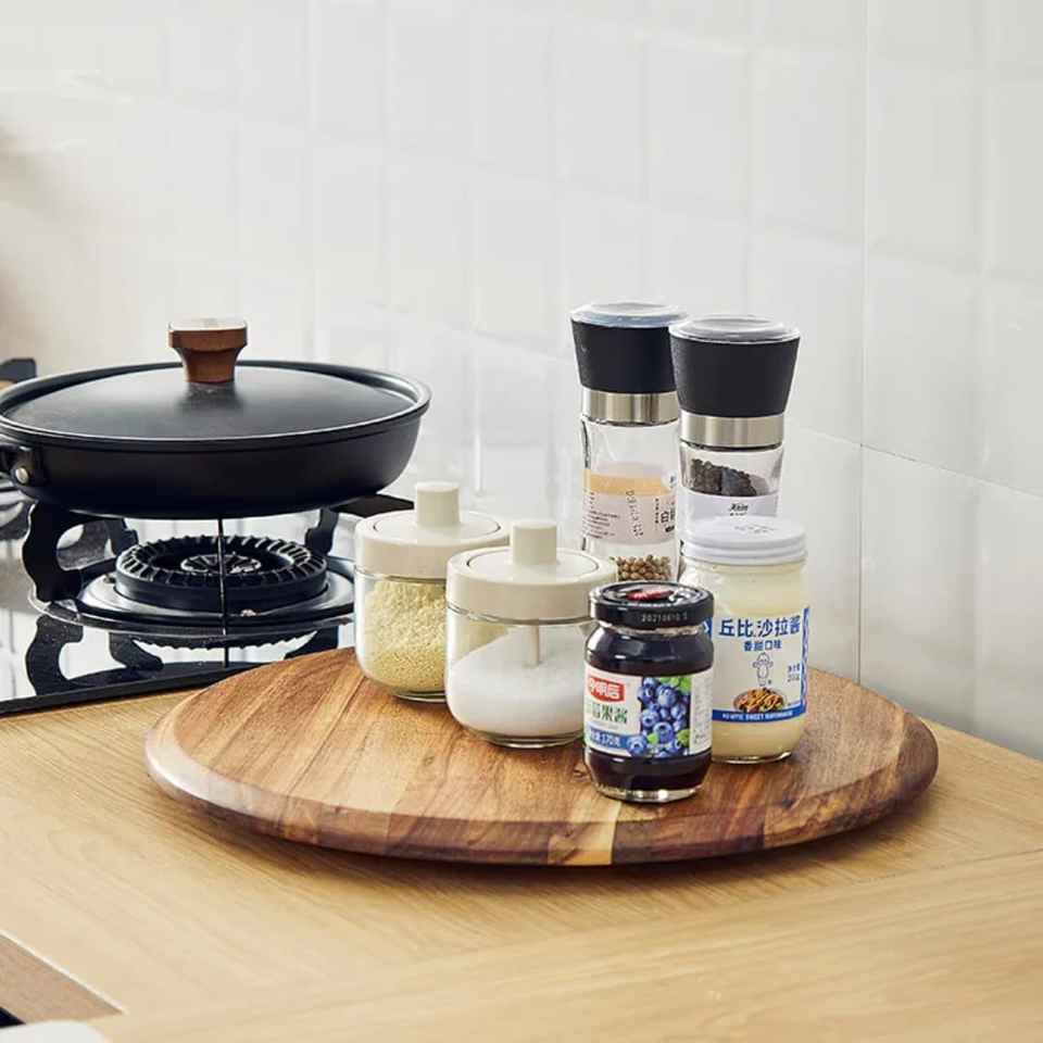 เขียงไม้เนื้อแข็งขายตรงจากโรงงาน แบบสองด้านหนาพิเศษ มีด้ามจับ สำหรับใช้ในครัวเรือน รูปทรงกลม สำหรับหั่นผลไม้และผัก