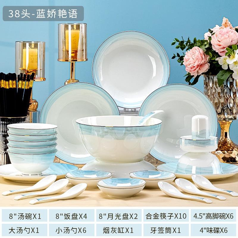 2025เครื่องใช้บนโต๊ะอาหารเซรามิก38ชิ้นแบบเรียบง่ายชุดเครื่องใช้บนโต๊ะอาหารแบบจีนสำหรับรับประทานอาหารหกคน