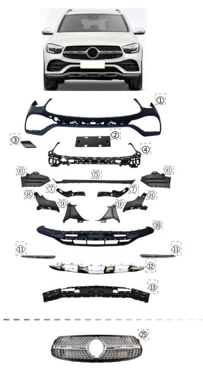 Factory Direct Sales Body Kits for Mercedes Benz X253 OEM 2538856204 Car Front Bumpers with Air Grilles for GLC X253